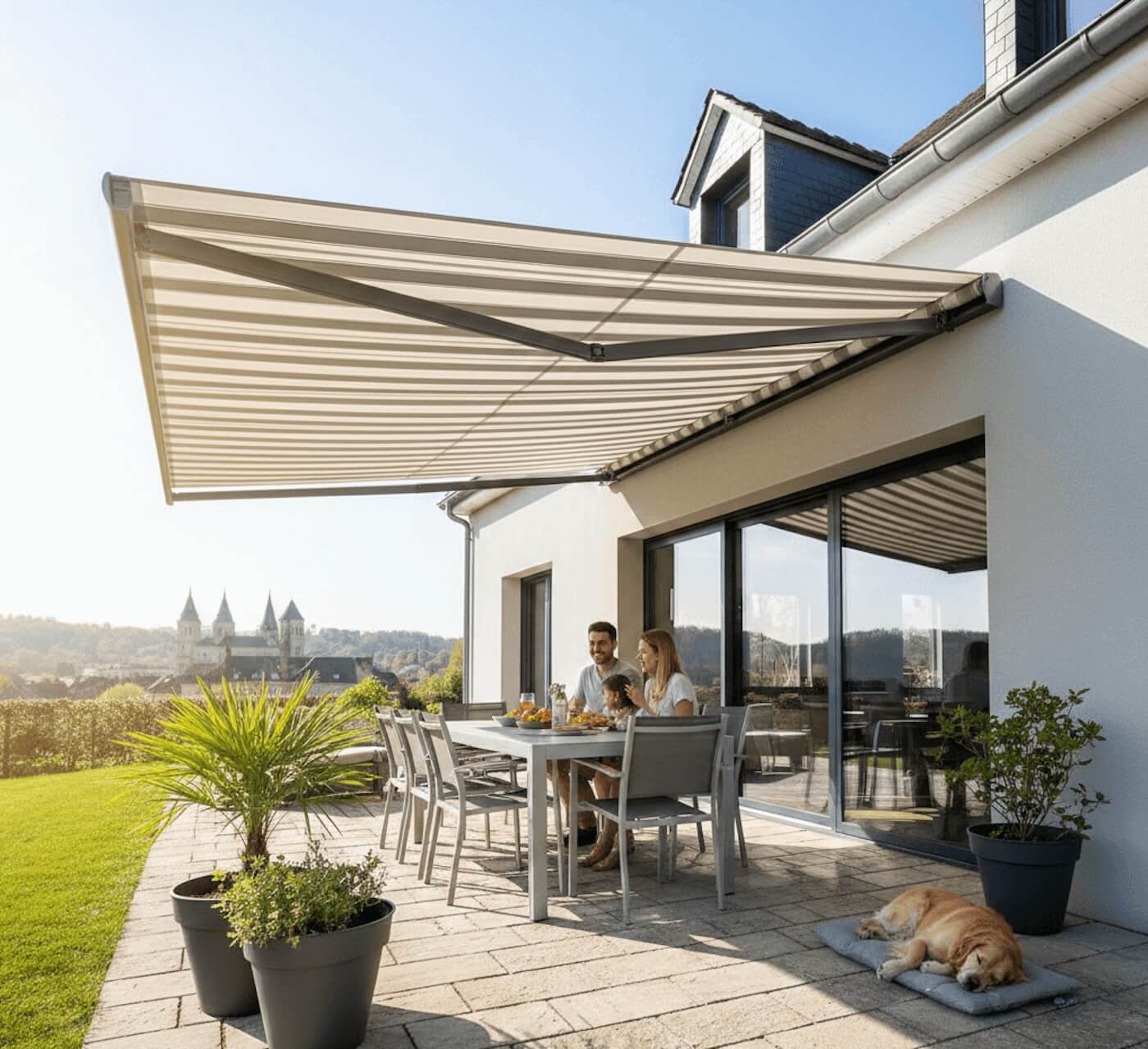 Dès que le soleil revient, la terrasse devient rapidement impraticable sans protection adaptée. Le store de terrasse crée une zone d’ombre immédiate, agréable et tempérée, idéale pour :